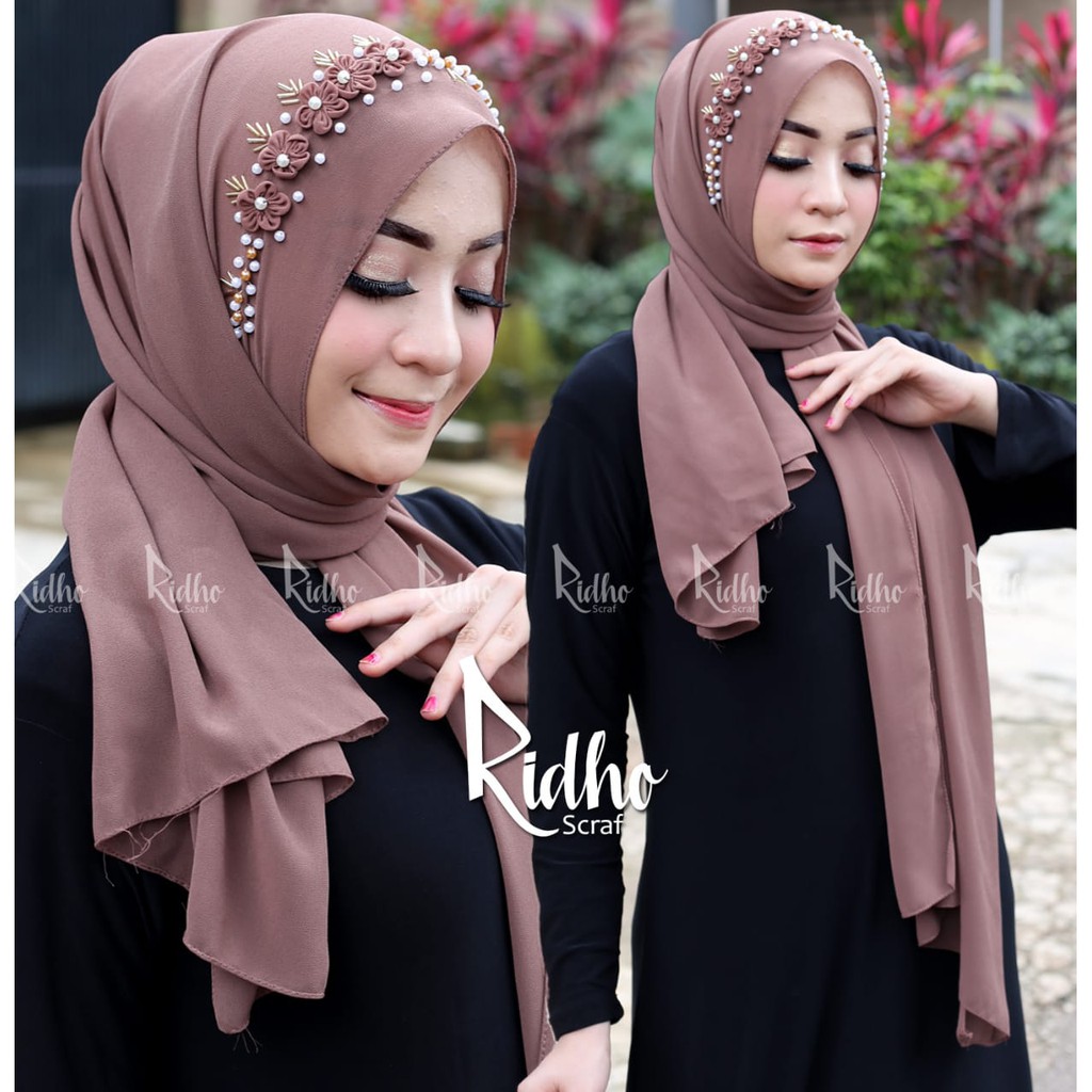 Hijab Pasmina Payet Bunga Tali Terbaru / pasmina Bunga Jasmin ceruty Babydoll by Delima Collection